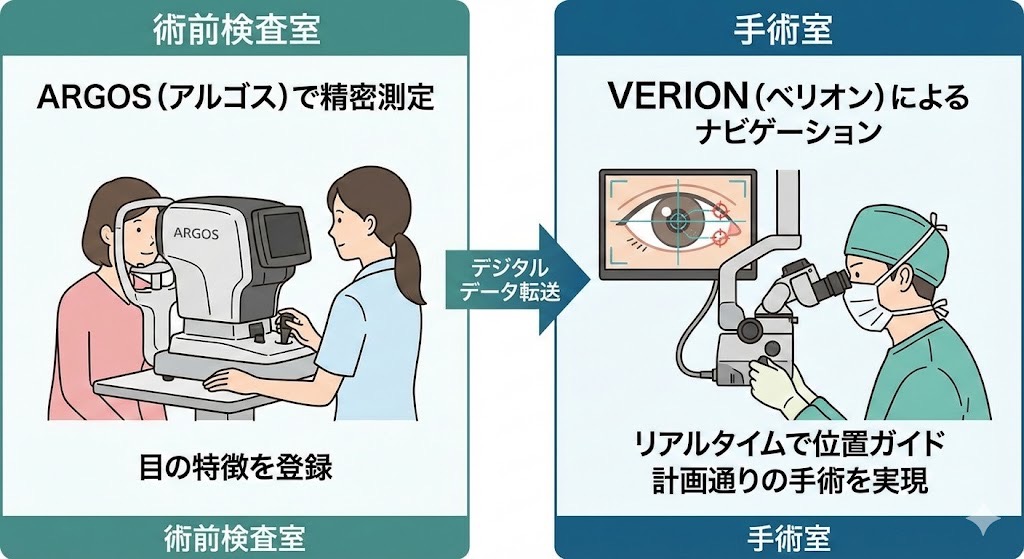 アルゴスによる精密な「測定」と、ベリオンによる正確な「ガイド」。これらを組み合わせることで、乱視に悩む患者様にも、術後のクリアで快適な視界を提供できる環境を整えております。